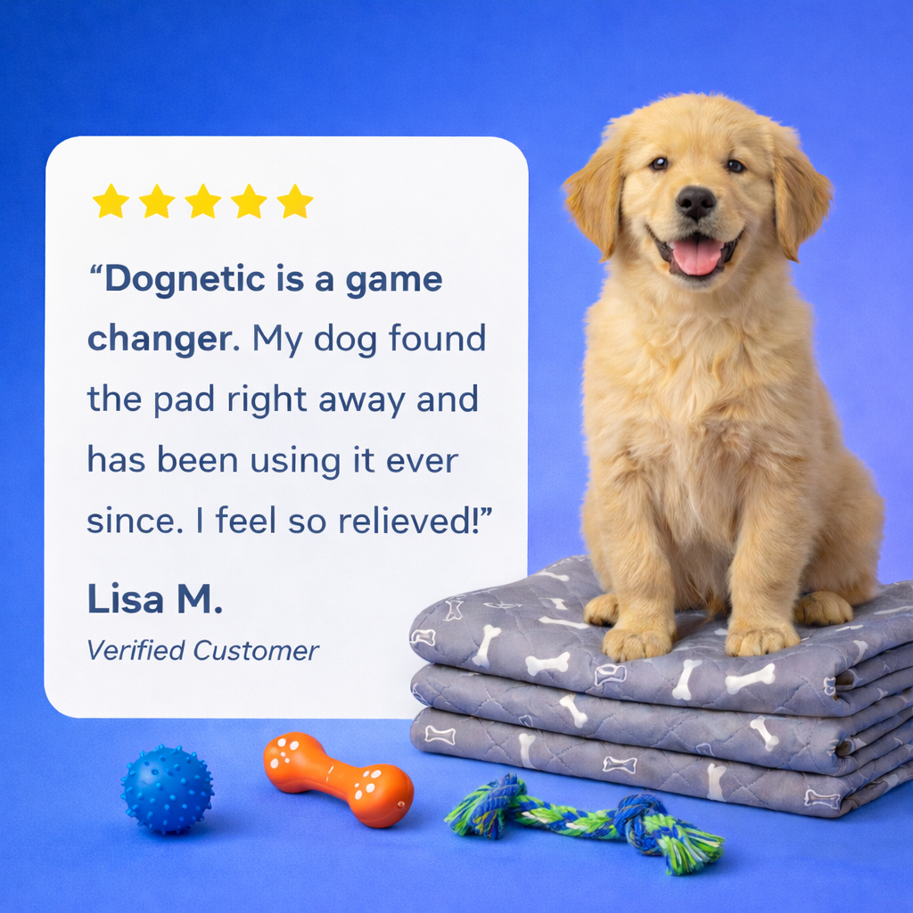 Dognetic™ uses a pheromone scent dogs naturally follow, giving your puppy a clear spot to choose — so they stop guessing and start using the pad.